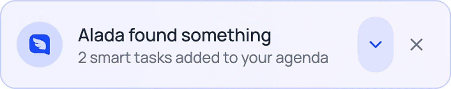 Most systems need you to stay on top of them. Alada keeps going even when you're not. Wake up to a day that's already sorted — no scramble, no catching up.