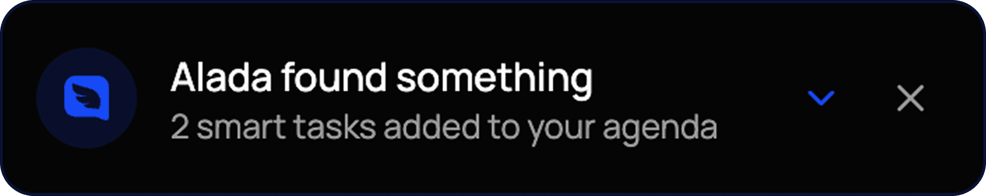 Most systems need you to stay on top of them. Alada keeps going even when you're not. Wake up to a day that's already sorted — no scramble, no catching up.